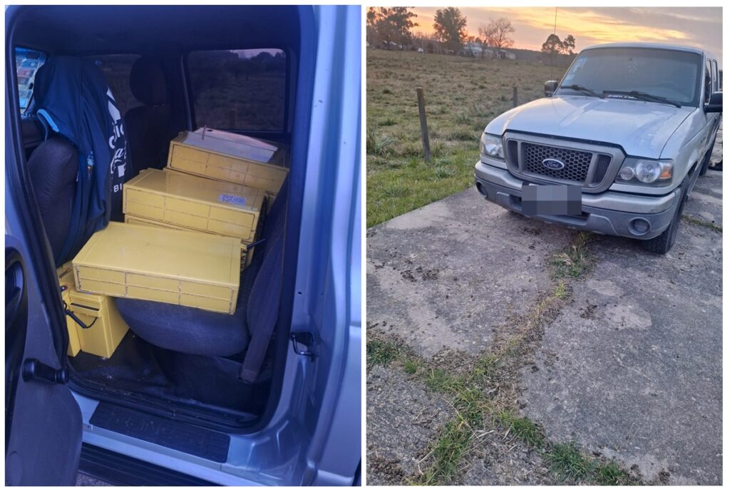 Fuentes policiales también mencionaron que las tres personas se movilizaban en una camioneta Ford Ranger, teniendo adulterada la cédula del vehículo.