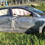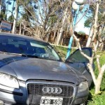 Durante la mañana de ayer en el barrio Las Tejas un auto marca Audi terminó su raid descontrolado, frente a la plaza de juegos que está ubicada antes de los depósitos de rollizos de madera de la firma Egger.