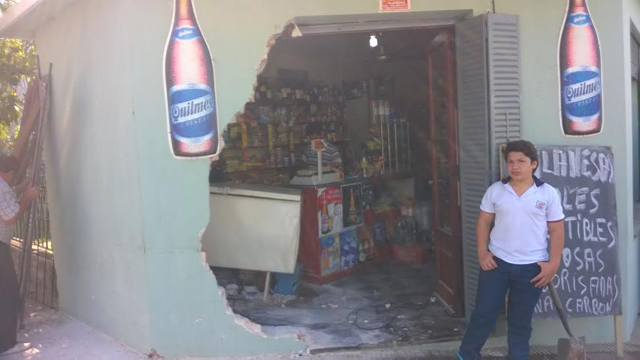 Como producto del violento impacto, la puerta del multirubros fue «ampliada», y un freezer y un mostrador fueron completamente destruidos.