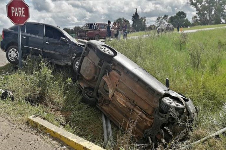 Ante la maniobra del conductor del Astra, el Toyota terminó volcando sobre la banquina.