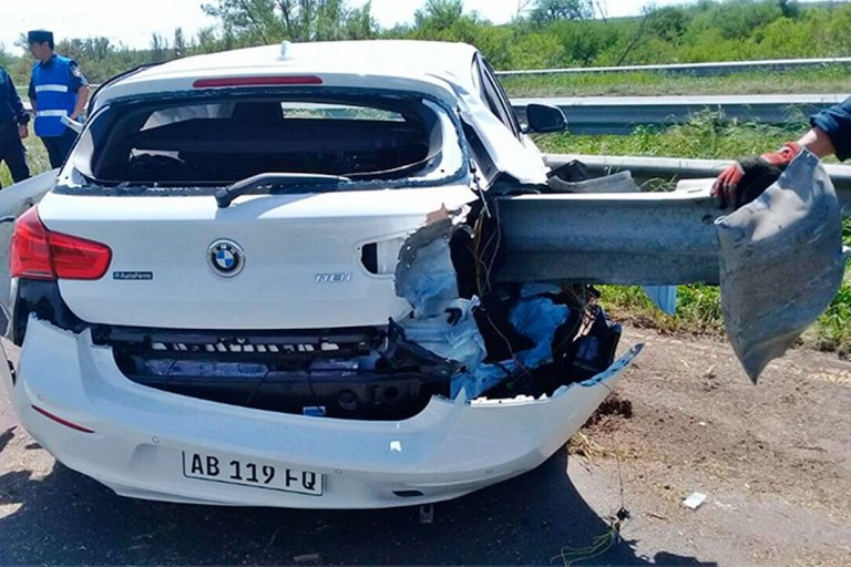 Según indicaron los Bomberos Voluntarios de Ceibas que acudieron al rescate en el siniestro vial, el conductor de un auto BMW perdió el control del mismo y chocó contra el guardarrail, con tanta violencia que la barra de acero, atravesó la parte trasera del automóvil, de izquierda a derecha y la punta del guardarrail, apareció en el lado derecho del BMW.