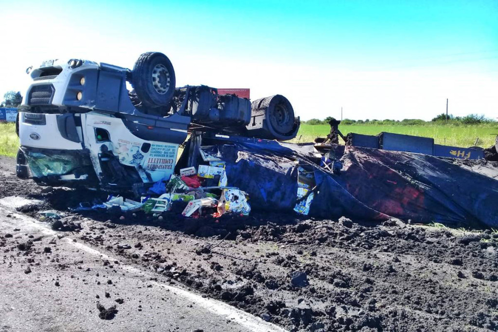 El conductor de un camión Ford, modelo 2042, con acoplado perdió el control del rodado y volcó sobre la banquina. Circulaba en sentido oeste este y transportaba frutas y verduras hacia la localidad de Santo Tomé, en la provincia de Corrientes.