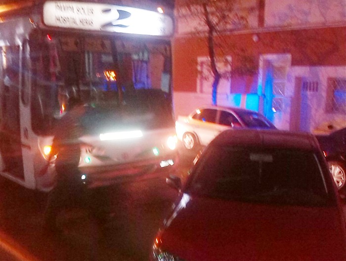 Un colectivo de la línea 2 colisionó la parte trasera de un automóvil Fiat que estaba estacionado sobre la mano derecha de calle Montevideo. El chofer del ómnibus maniobró entre dos filas de autos a ambos lados pero chocó al auto, siguiendo luego su marcha. A raíz de ello el dueño del Fiat inició una persecución, interceptando al colectivo en calles Urquiza y Estrada. De inmediato se hizo presente personal policía aguardando la presencia del personal de la dirección de Tránsito.