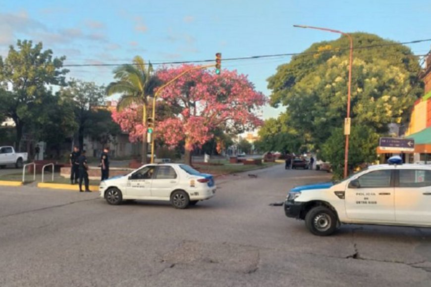 El hecho ocurrió en calles Irigoyen y Urquiza de Concepción del Uruguay. Los ocupantes de la moto, luego del impacto, recorrieron unos 40 metros y cayeron sobre la fuente en el boulevard. Por la fuerza del impacto, la moto se partió al medio.