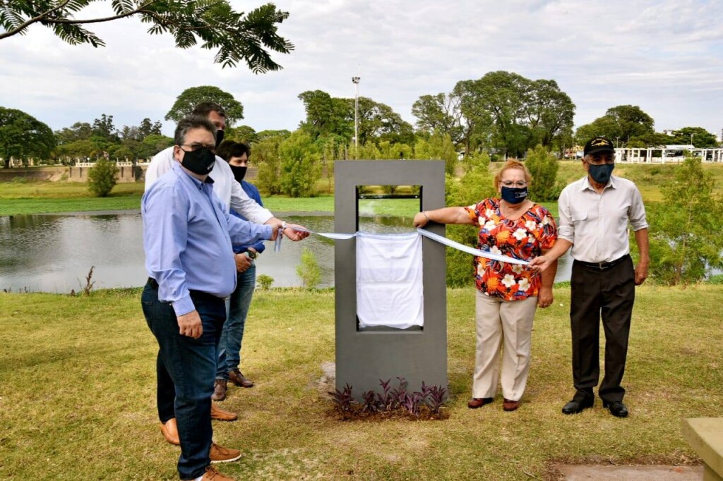 Sobre la calle que lleva su nombre, en Zona Verde de la Costanera, se realizó este sábado el descubrimiento del Monolito en homenaje a Fernando Mendoza, en el aniversario de su natalicio.