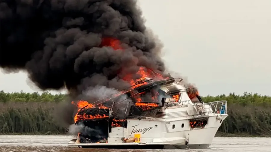Según se indicó, un arenero que navegaba por la zona intentó acercarse para colaborar y apagar las llamas, pero el esfuerzo resultó imposible debido a la magnitud del incendio.