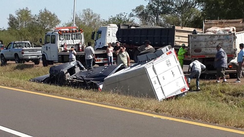 En declaraciones a www.diarioriouruguay.com.ar, el vocero de la empresa Caminos del Río Uruguay, Mariano Bradanini comentó que “a las 13.30 horas de este lunes en el kilómetro 242 de la Autovía 14, una Ford F100 -dominio TTA169- que transitaba de norte a sur con un tráiler para trasportar caballos despista hacia el cantero central. A causa de ello, el tráiler embiste desde atrás a la camioneta que lo cinchaba, es decir, se sube arriba de la caja de la camioneta literalmente”.