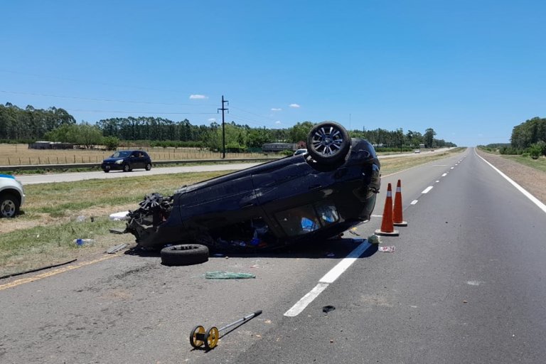 Un auto Renault Clio, en el que viajaban tres mujeres, con destino a la provincia de Misiones, chochó contra el guarda raíl y volcó.