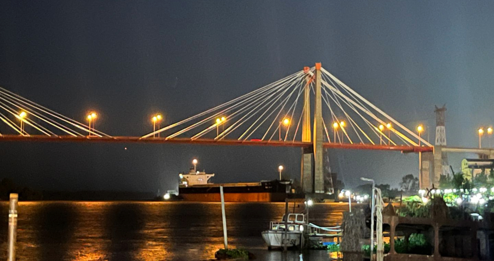 Una embarcación de bandera liberiana, llamada “En May”, sufrió un desperfecto en el timón y embistió uno de los pilares del puente, provocando daños en la estructura.
